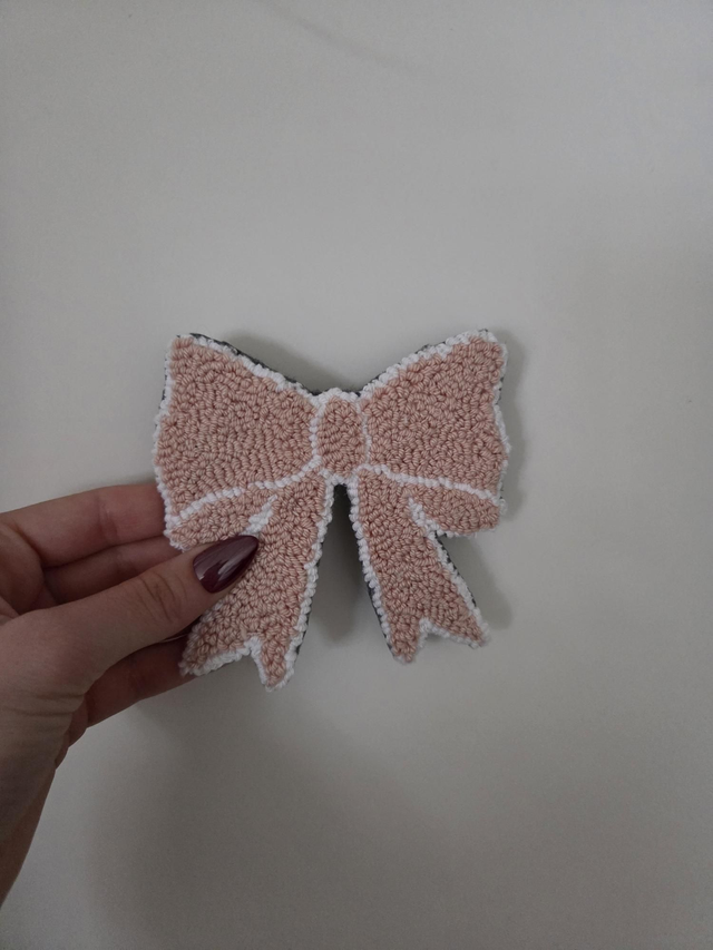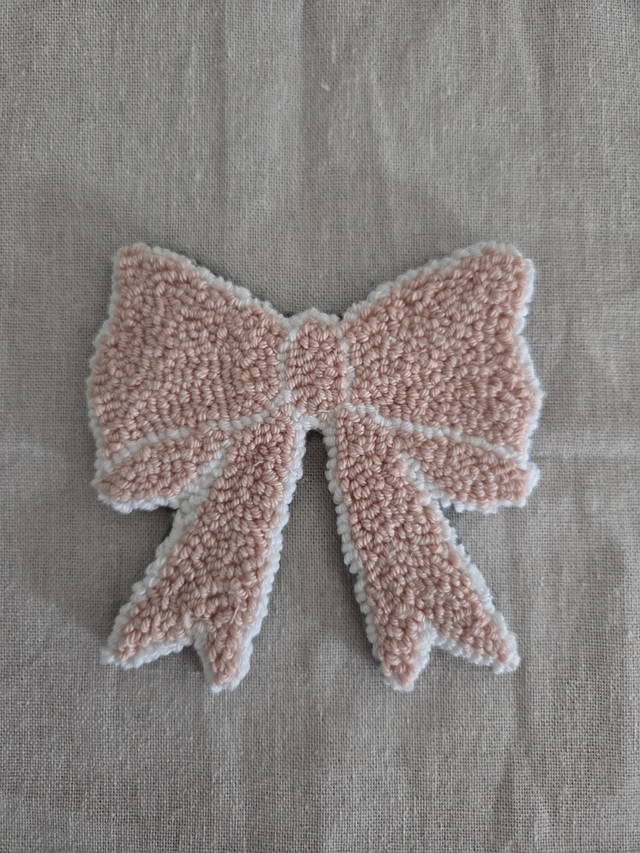 Apportez une touche de douceur et de romantisme à vos pauses café avec ce dessous de tasse Nœud rose, entièrement réalisé à la main en punch needle.