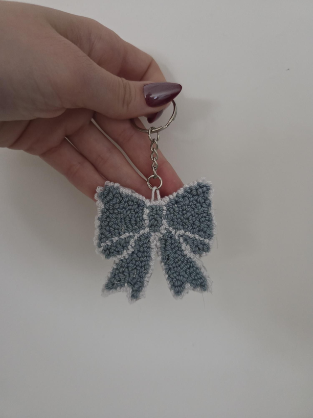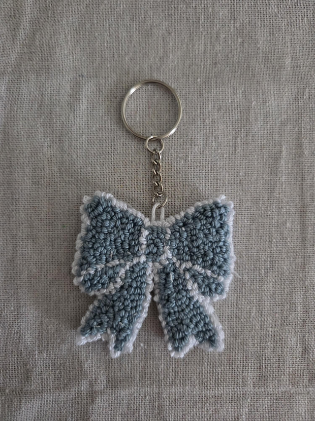 Ajoutez une touche de douceur et d’originalité à votre trousseau avec le porte-clés Nœud bleu, une création artisanale réalisée à la main en punch needle.